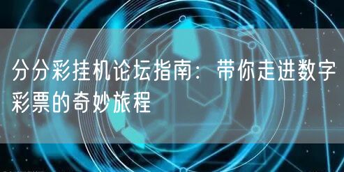 分分彩挂机论坛指南:带你走进数字彩票的奇妙旅程